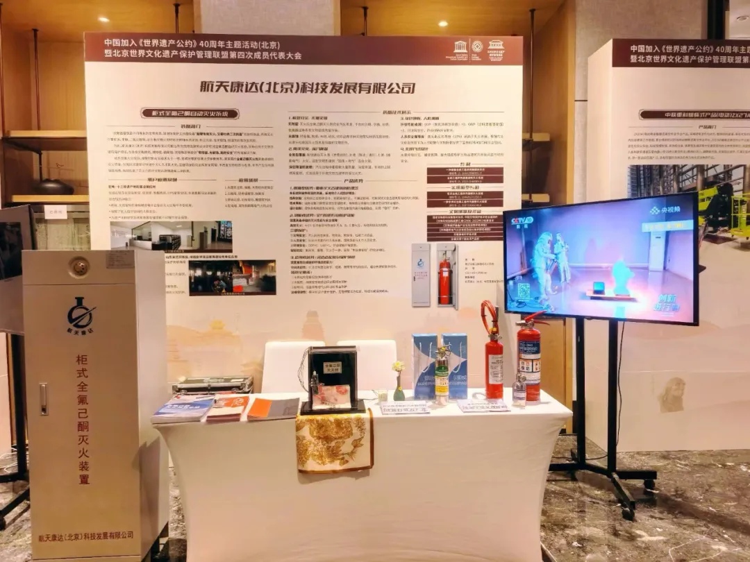航天康达(北京)科技发展有限公司受邀参加同期举办的“北京文化遗产科技装备应用展”,并展出了核心创新成果——文物建筑全氟己酮自动灭火系统。